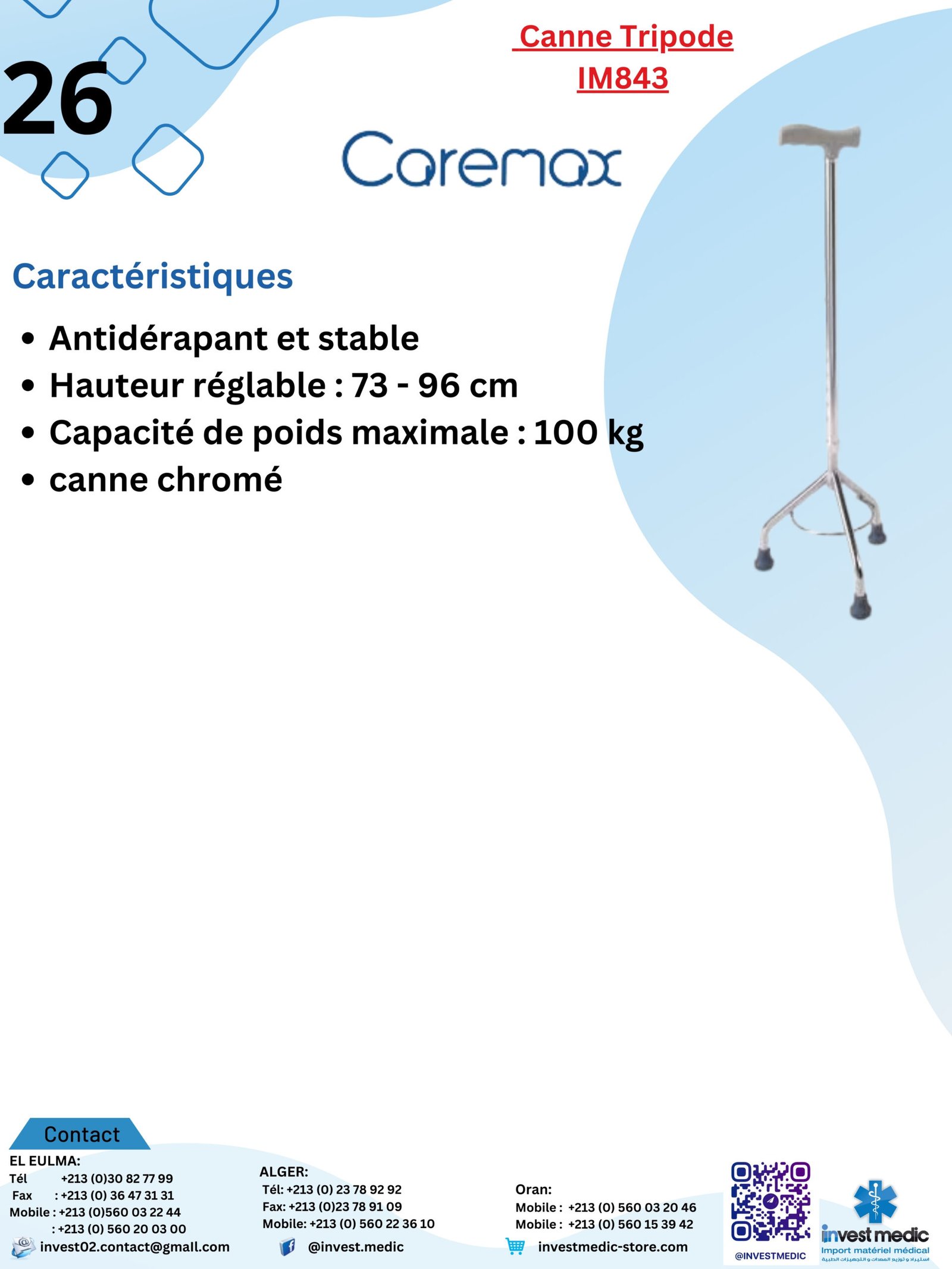Accueil Mobilité & Aïd A La Marche Cannes & Béquilles Canne Tripode IM843 Canne Tripode IM843 Fiche Technique Catégories : Cannes & Béquilles, Mobilité & Aïd A La Marche Produits similaires Béquille Large IM801LL /LM/LS Cannes & Béquilles, Mobilité & Aïd A La MarcheLire la suite Fauteuil Roulant Confort IM932 Fauteuil Roulant, Mobilité & Aïd A La MarcheLire la suite Chaise Garde-Robe Chromé Avec Roue IM615 Chaise Grade Robe, Mobilité & Aïd A La MarcheLire la suite Fauteuil Roulant Lit IM941 Fauteuil Roulant, Mobilité & Aïd A La MarcheLire la suite