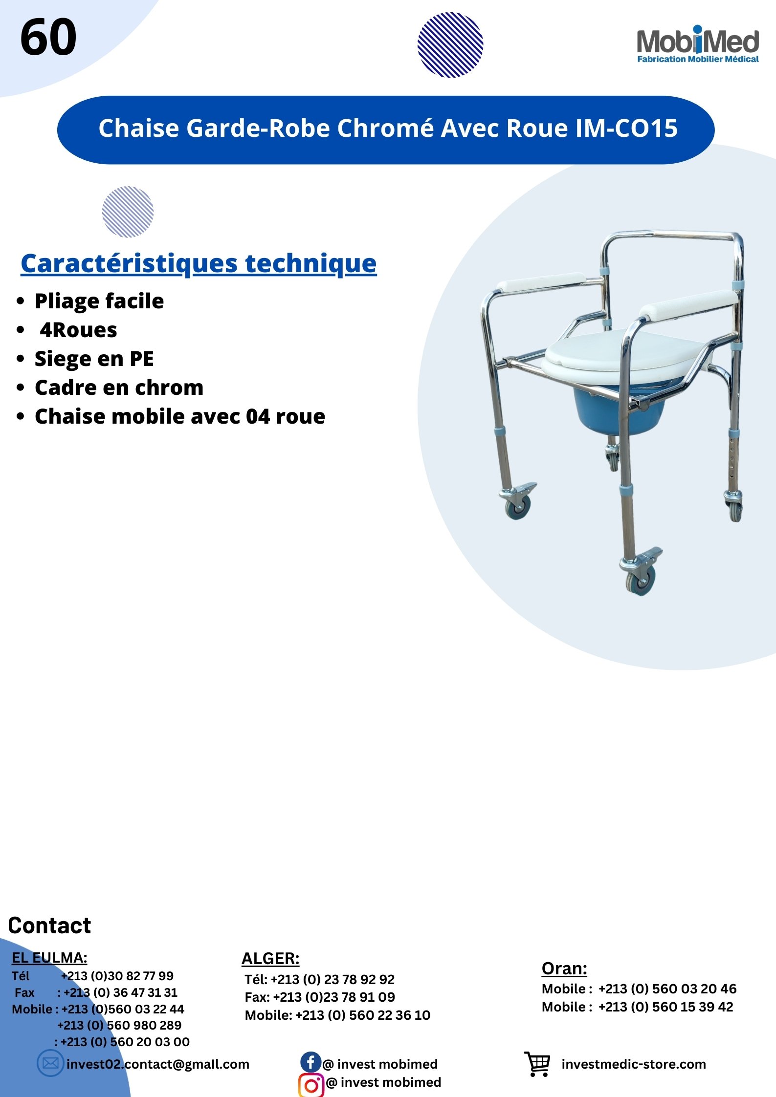 Accueil Mobilier Médical / Invest Mobimed Chaise Garde-Robe Chromé Avec Roue IM-CO15