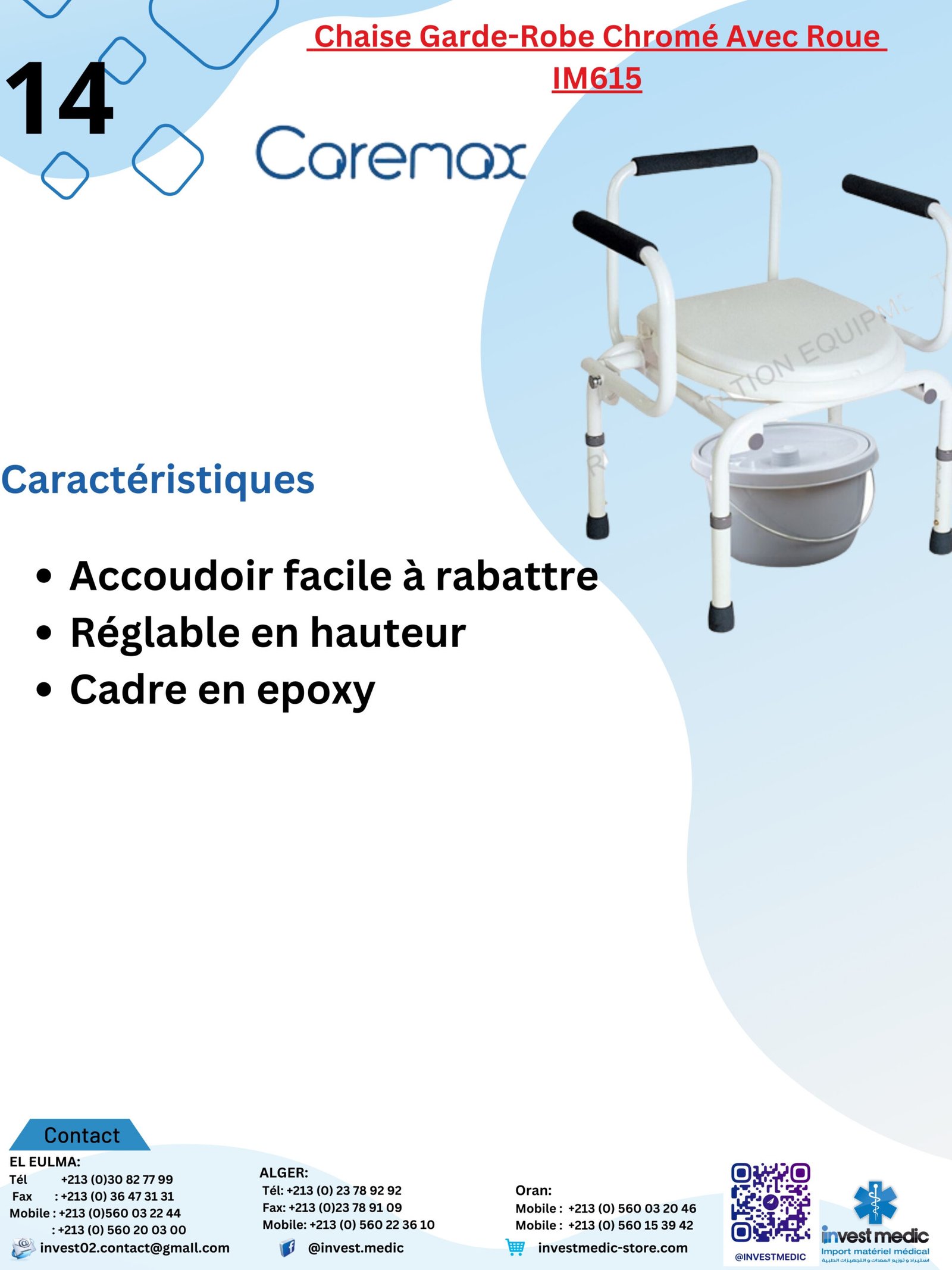 Accueil Mobilité & Aïd A La Marche Chaise Grade Robe Chaise Garde-Robe Chromé Avec Roue IM615 Chaise Garde-Robe Chromé Avec Roue IM615 Fiche Technique Catégories : Chaise Grade Robe, Mobilité & Aïd A La Marche Produits similaires Déambulateur A Roue Aluminium IM812L5 Déambulateur, Mobilité & Aïd A La MarcheLire la suite Béquille Large IM801LL /LM/LS Cannes & Béquilles, Mobilité & Aïd A La MarcheLire la suite Canne Siège IM836 Cannes & Béquilles, Mobilité & Aïd A La MarcheLire la suite Fauteuil Roulant Lit IM941 Fauteuil Roulant, Mobilité & Aïd A La MarcheLire la suite