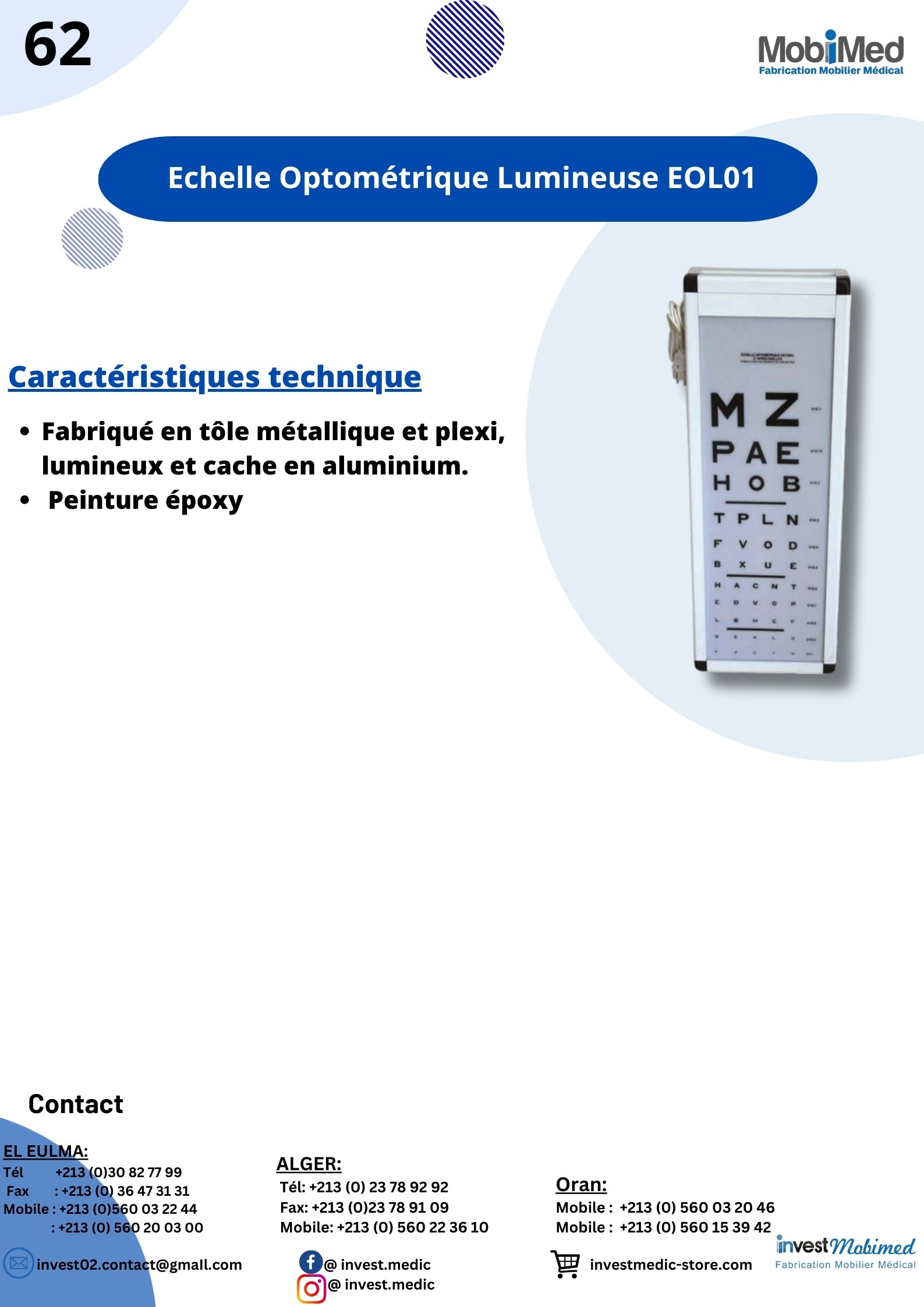 Accueil Mobilier Médical / Invest Mobimed Echelle Optométrique Lumineuse EOL01
