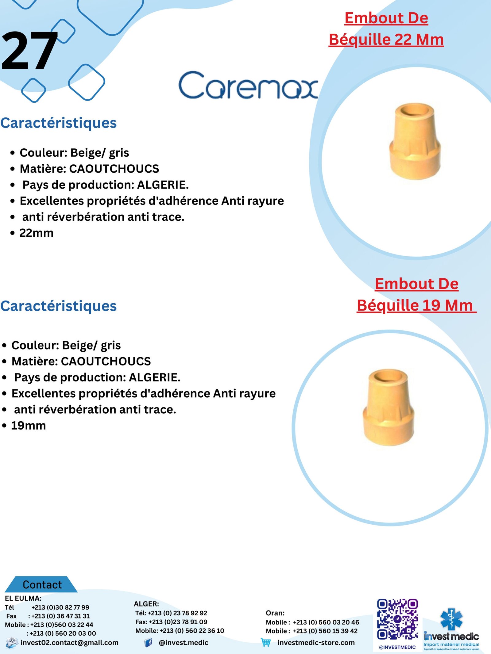 Accueil Mobilité & Aïd A La Marche Accessoire Embout De Béquille 22 Mm/ 19 Mm Embout De Béquille 22 Mm/ 19 Mm Fiche Technique Catégories : Accessoire, Mobilité & Aïd A La Marche Produits similaires Fauteuil Roulant Electrique IM 500Q Fauteuil Electrique, Mobilité & Aïd A La MarcheLire la suite Fauteuil Roulant IMC Leger Aluminium Enfant IM 982LGC Fauteuil Roulant, Mobilité & Aïd A La MarcheLire la suite Fauteuil Roulant Avec Garde-Robe IM608 Fauteuil Roulant Grade Robe, Mobilité & Aïd A La MarcheLire la suite Béquille Large IM801LL /LM/LS Cannes & Béquilles, Mobilité & Aïd A La MarcheLire la suite