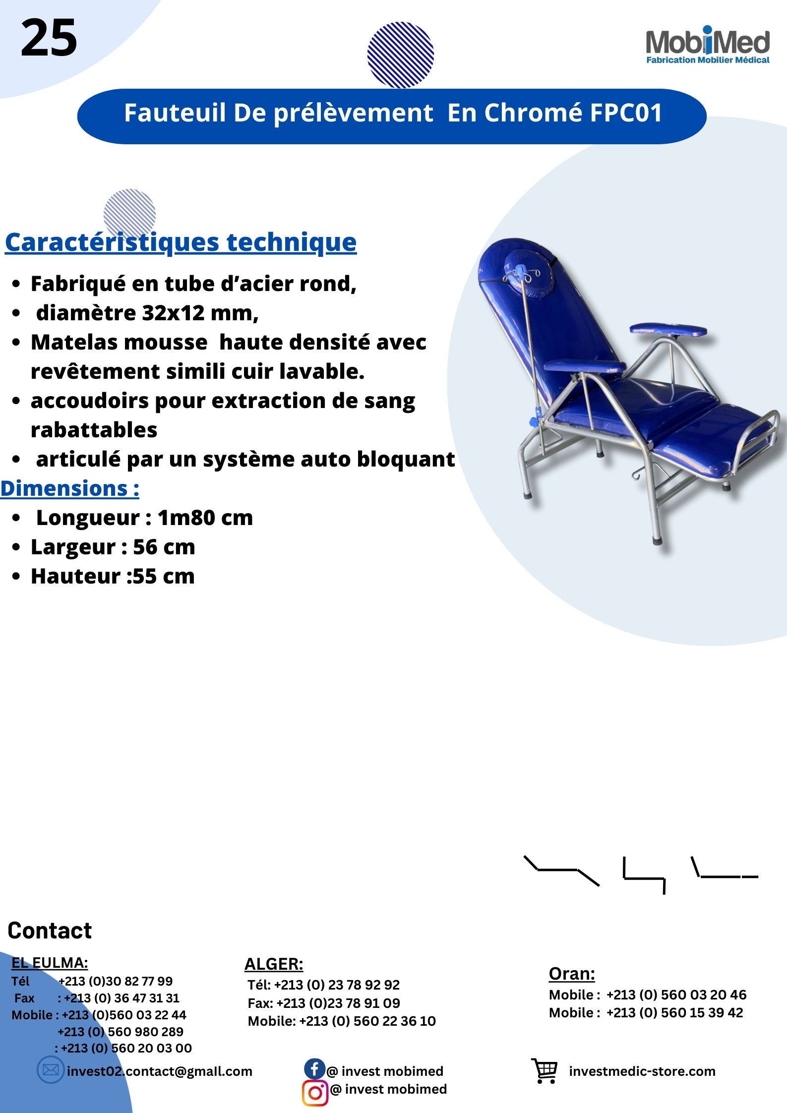 Accueil Mobilier Médical / Invest Mobimed Fauteuil De prélèvement Chromé FPC01