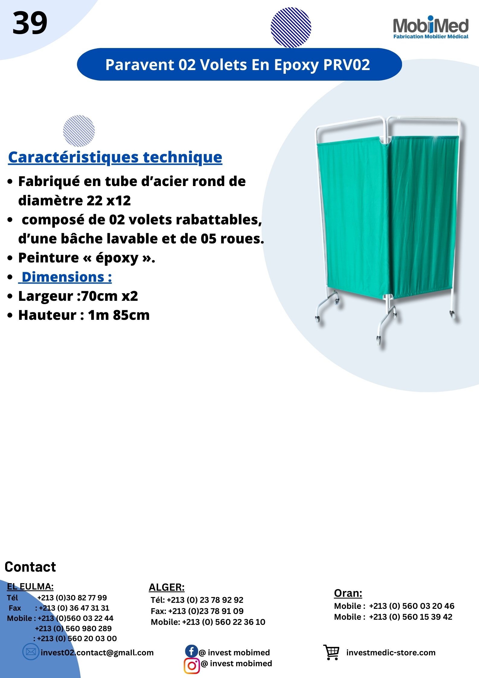 Accueil Mobilier Médical / Invest Mobimed Paravent 02 Volets En Epoxy PRV02