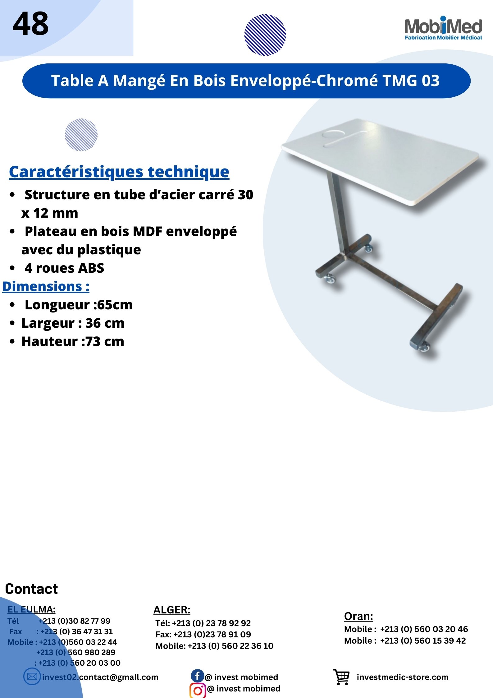 Accueil Mobilier Médical / Invest Mobimed Table A Mangé En Bois Enveloppé-Chromé TMG 03