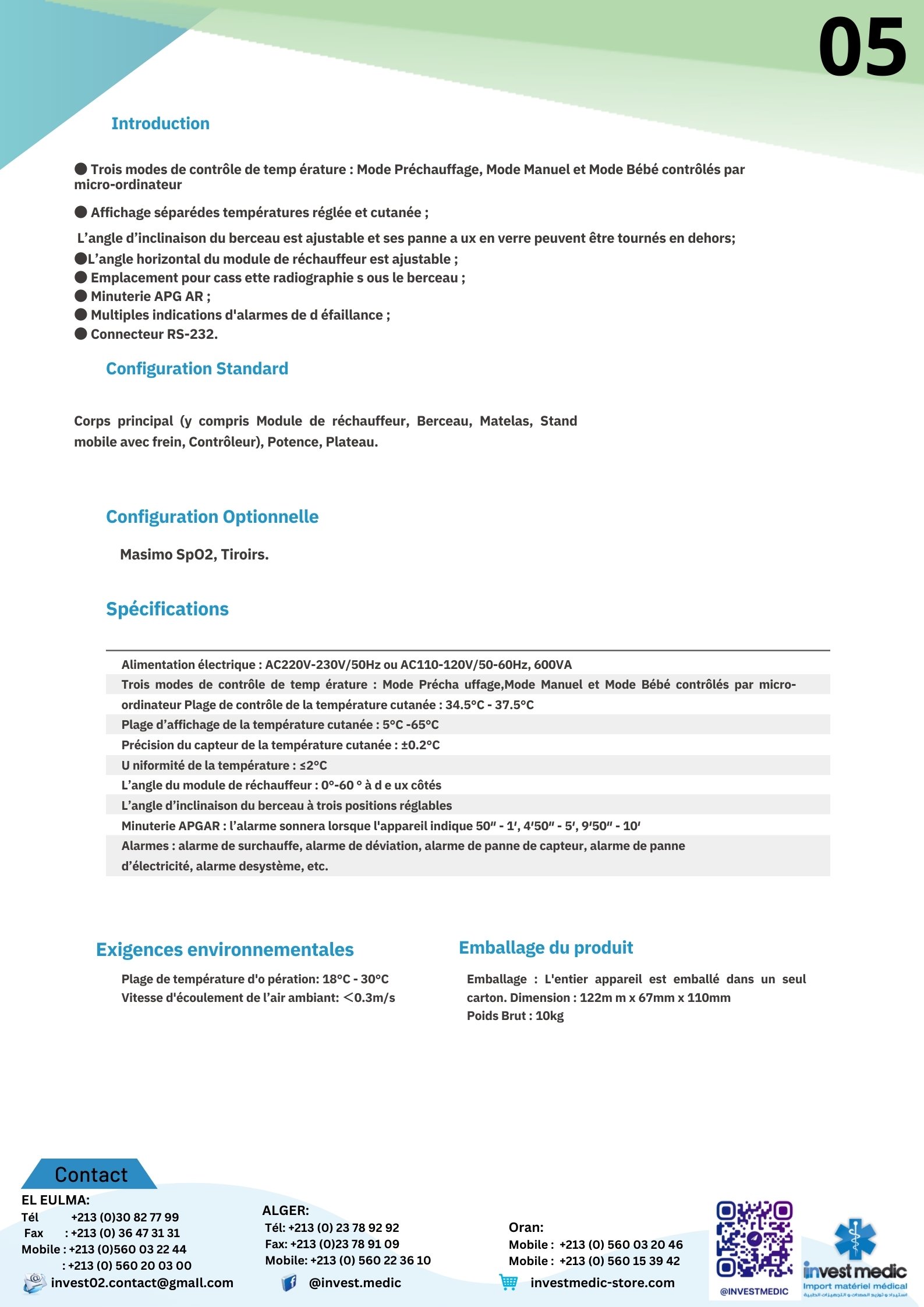 Accueil Néonatologie TABLE CHAUFANTE HKN-9010 TABLE CHAUFANTE HKN-9010 Fiche Technique Catégorie : Néonatologie Produits similaires TABLE CHAUFANTE HKN-90 NéonatologieLire la suite ENCEINTE DE HOOD YZ-130/160/200 NéonatologieLire la suite COUVEUSE BEBE YP-910 NéonatologieLire la suite APPAREIL DE PHOTOTHERAPIE MOBILE XHZ-90L NéonatologieLire la suite